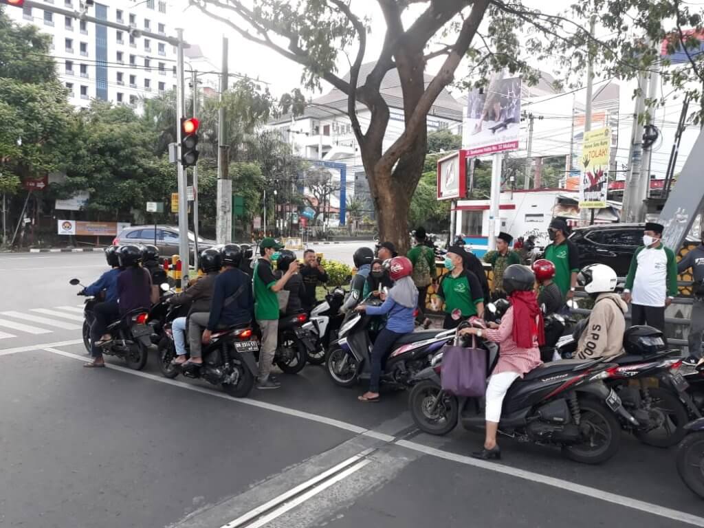 “Hari ini kita melakukan aksi sosial dengan turun ke jalan. Sebelum berangkat tadi, kita melakukan koordinasi dan berdoa bersama yang di pimpin oleh ketua MWC NU Lowokwaru, KH Mujib Shofi,” terang pria yang di panggil Toni ini.